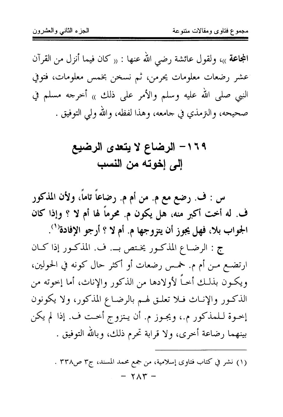 169 - الرضاع لا يتعدى الرضيع إلى إخوته من النسب