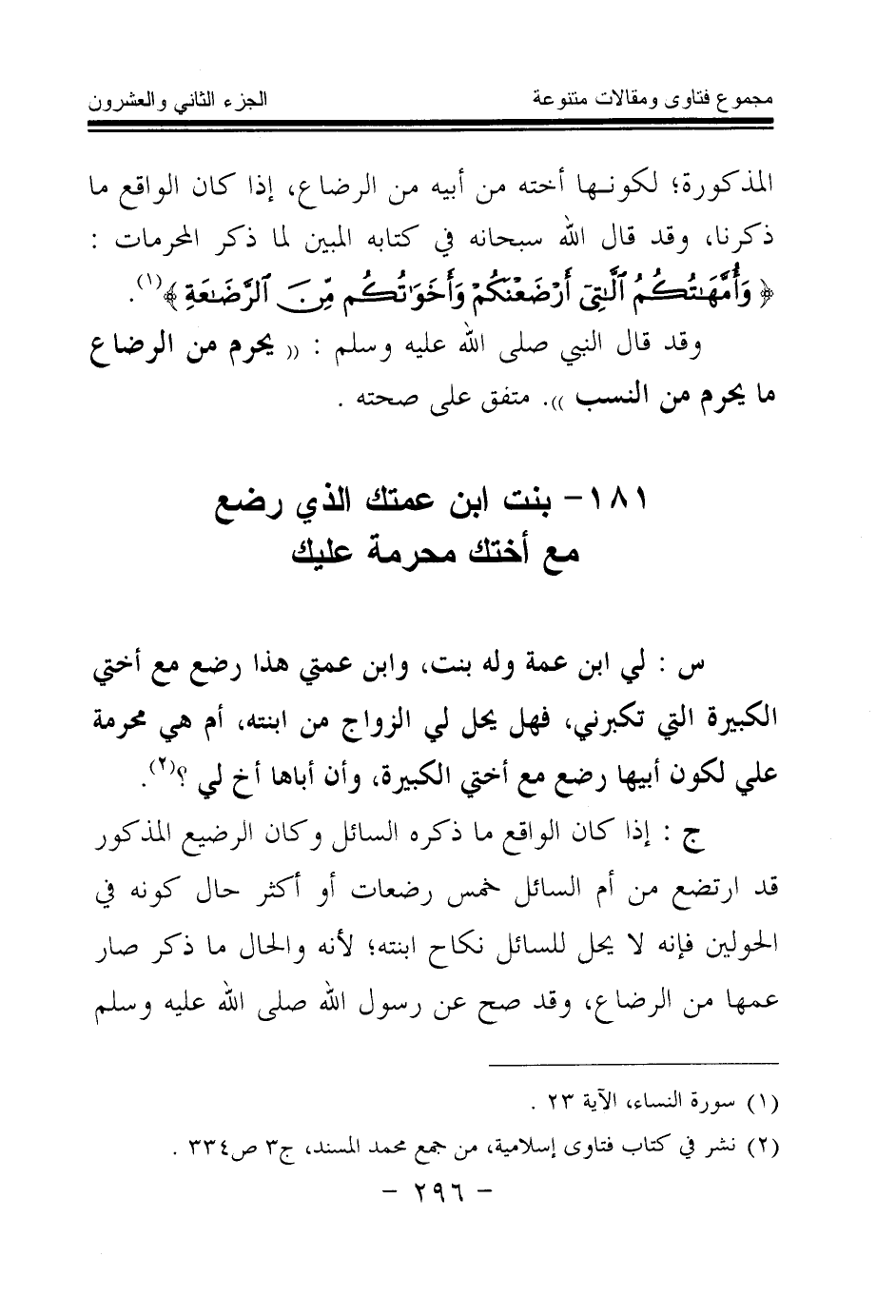 181 - بنت ابن عمتك الذي رضع مع أختك محرمة عليك