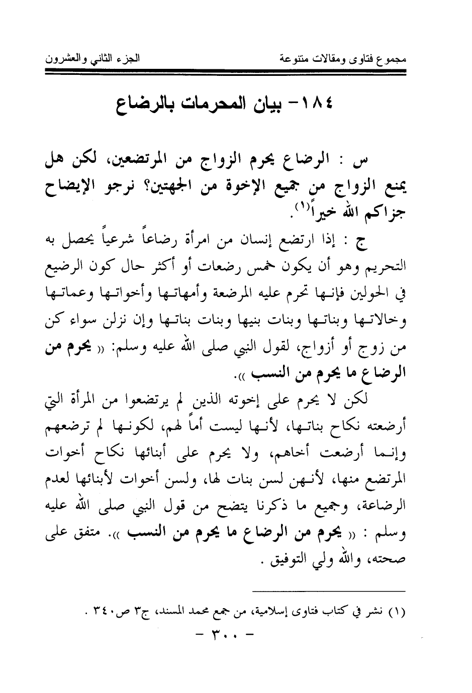 (¬1) نشر في كتاب فتاوى إسلامية، من جمع محمد المسند، ج 3 ص 340.