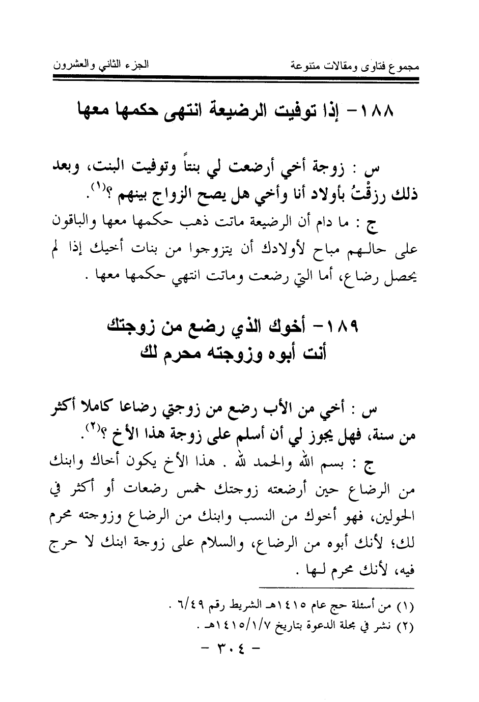 189 - أخوك الذي رضع من زوجتك أنت أبوه وزوجته محرم لك