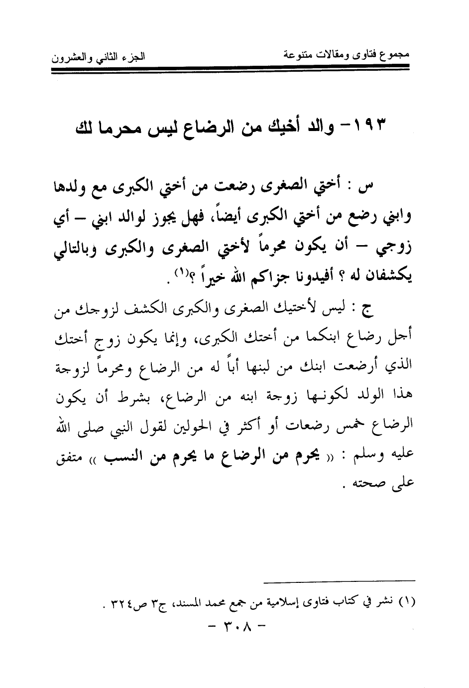 (¬1) نشر في كتاب فتاوى إسلامية من جمع محمد المسند، ج 3 ص 324.