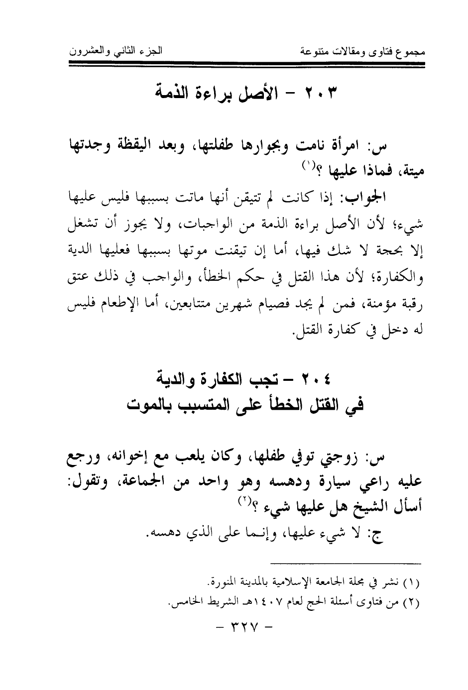 204 - تجب الكفارة والدية في القتل الخطأ على المتسبب بالموت