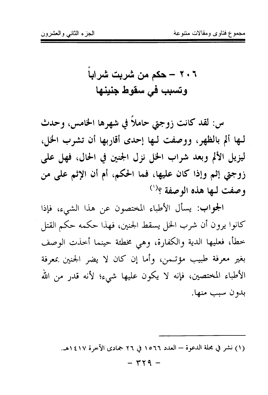 206 - حكم من شربت شرابا وتسبب في سقوط جنينها