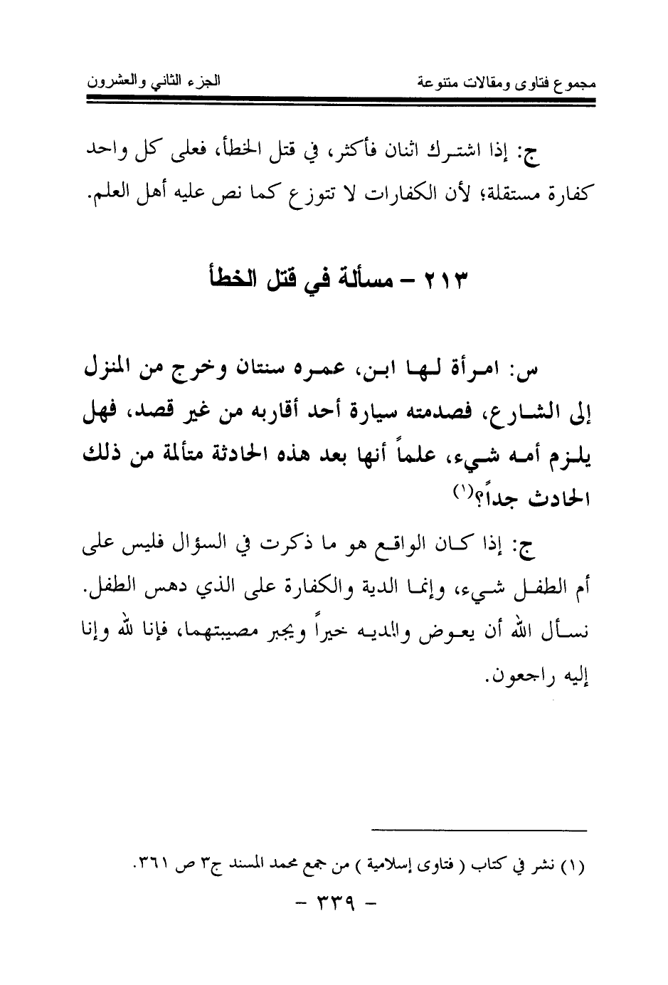 213 - مسألة في قتل الخطأ