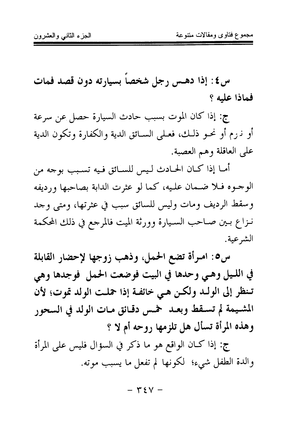 س4: إذا دهس رجل شخصا بسيارته دون قصد فمات فماذا عليه؟