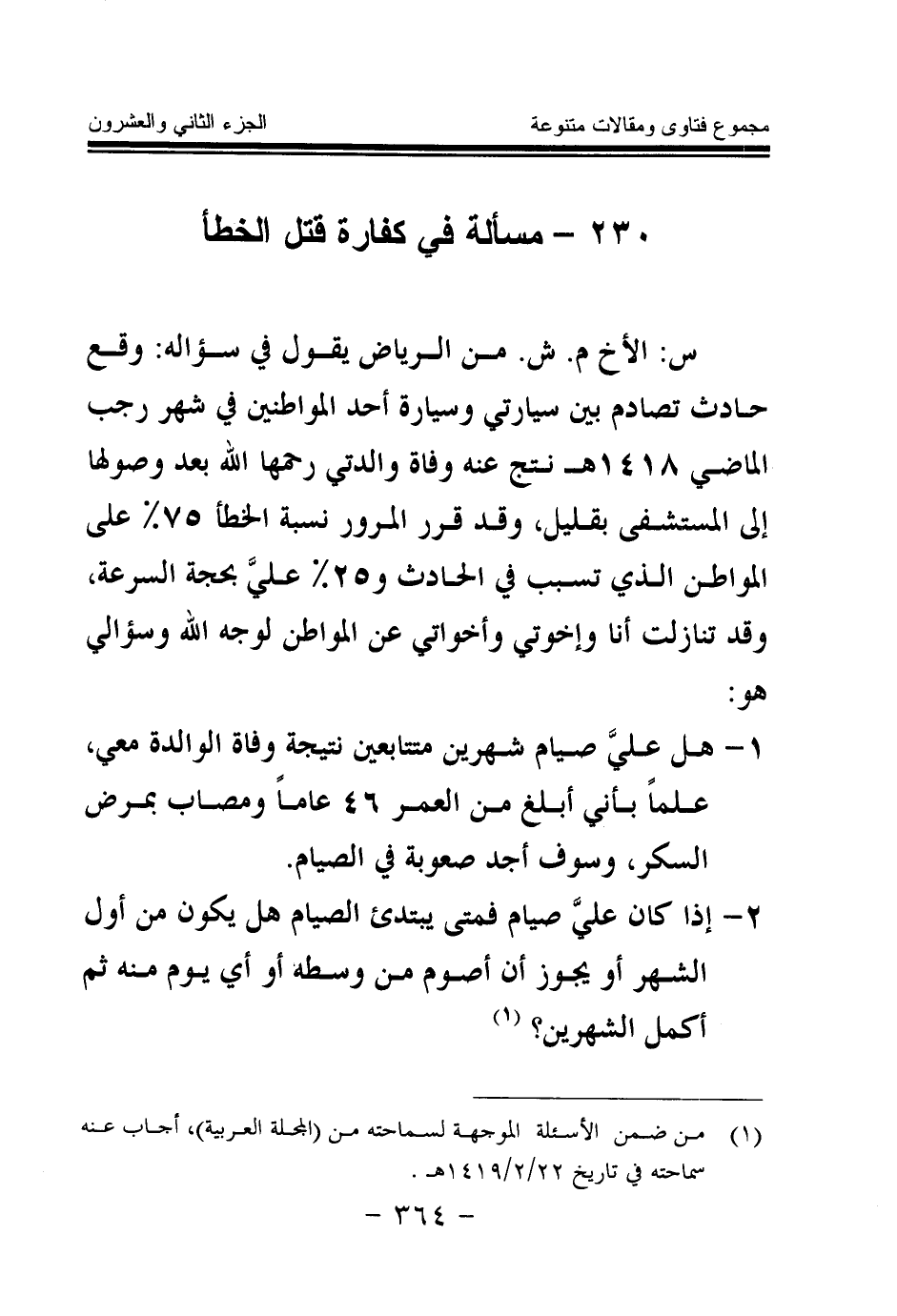 230 - مسألة في كفارة قتل الخطأ