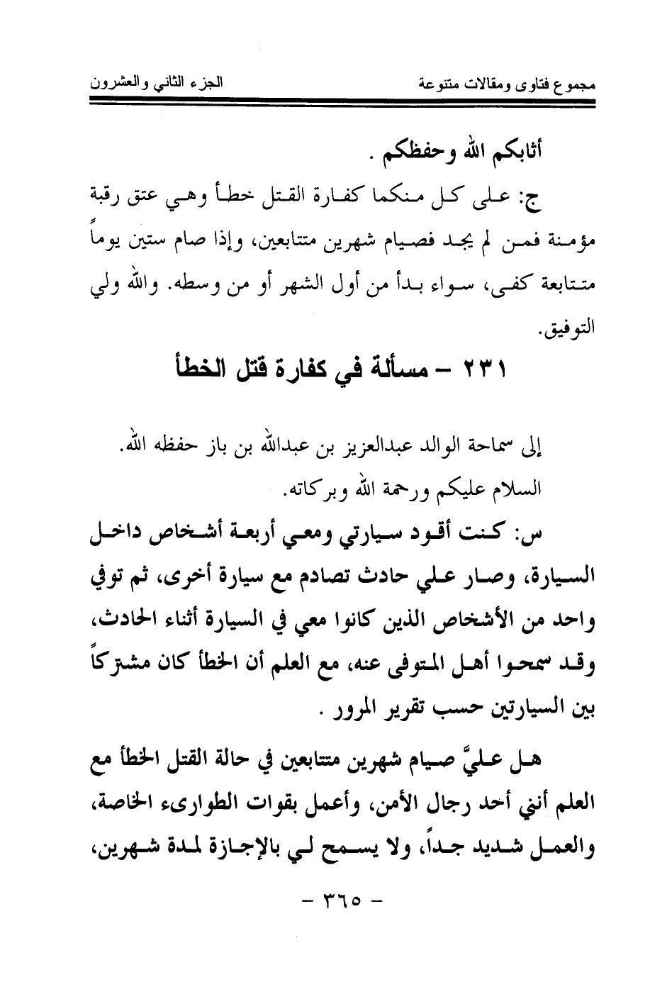 س: كنت أقود سيارتي ومعي أربعة أشخاص داخل السيارة، وصار علي حادث تصادم مع سيارة أخرى، ثم توفي واحد من الأشخاص الذين كانوا معي في السيارة أثناء الحادث، وقد سمحوا أهل المتوفى عنه، مع العلم أن الخطأ كان مشتركا بين السيارتين حسب تقرير المرور.