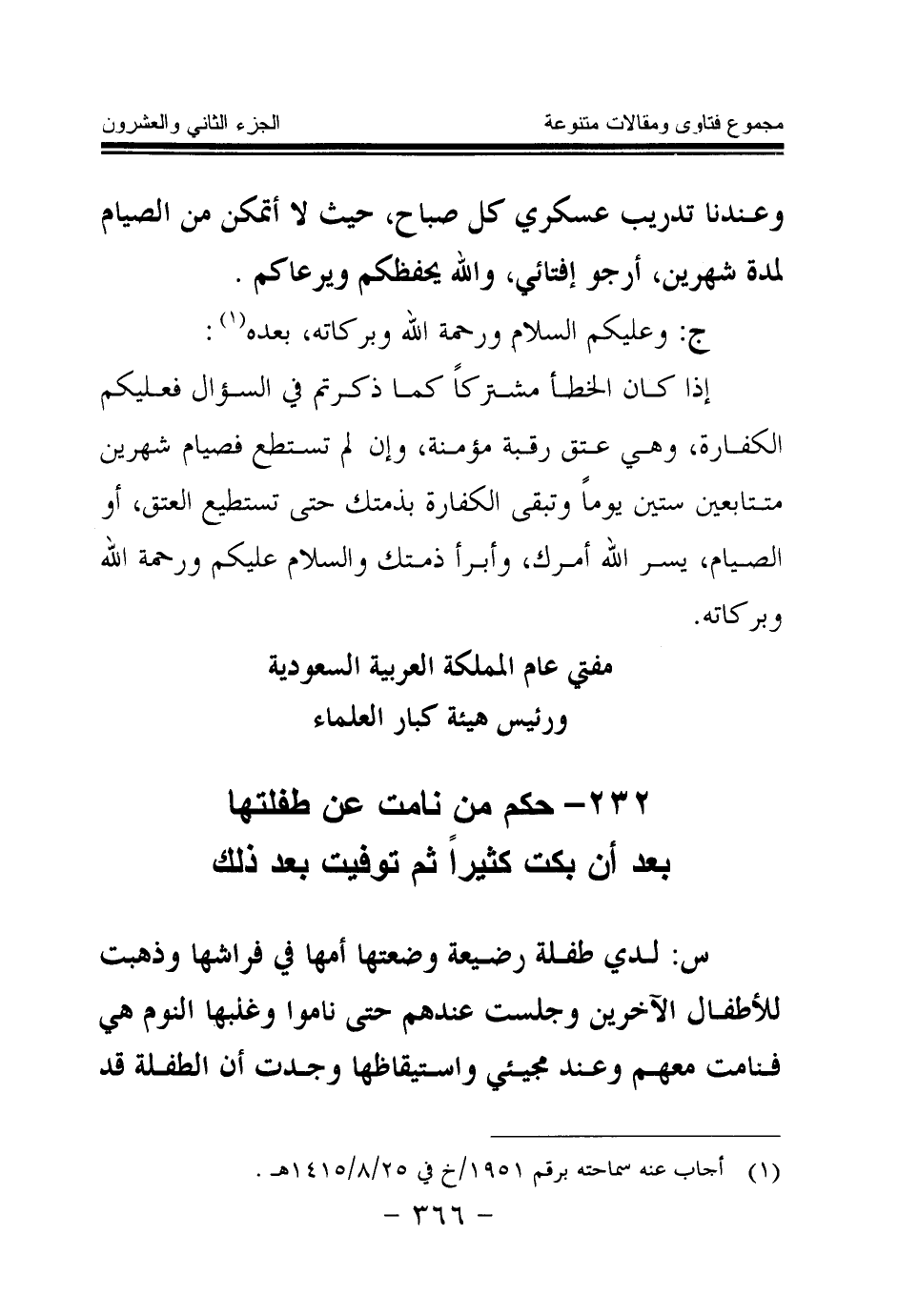 (¬1) أجاب عنه سماحته برقم 1951 \ خ في 25 \ 8 \ 1415هـ.