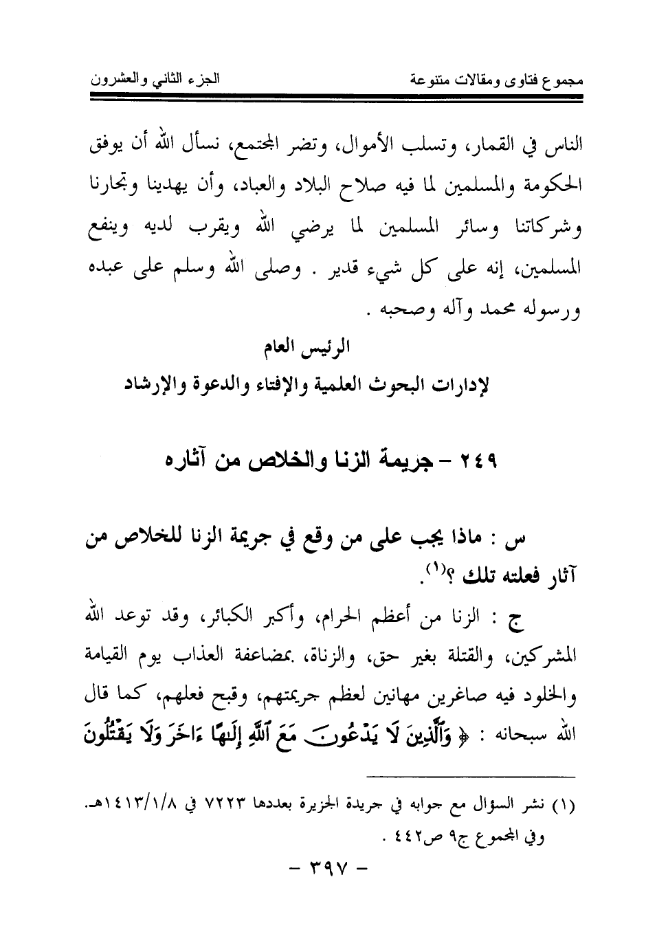 (¬1) نشر السؤال مع جوابه في جريدة الجزيرة بعددها 7223 في 8 \ 1 \ 1413هـ، وفي المجموع ج9 ص 442.
