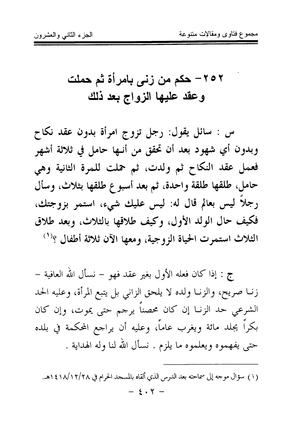 252 - حكم من زنى بامرأة ثم حملت