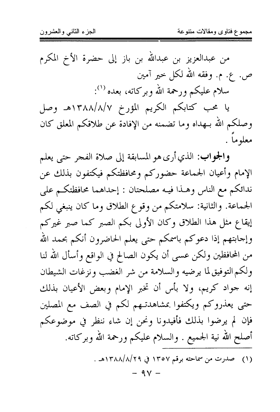 (¬1) صدرت من سماحته برقم 1357 في 29 \ 8 \ 1388هـ.