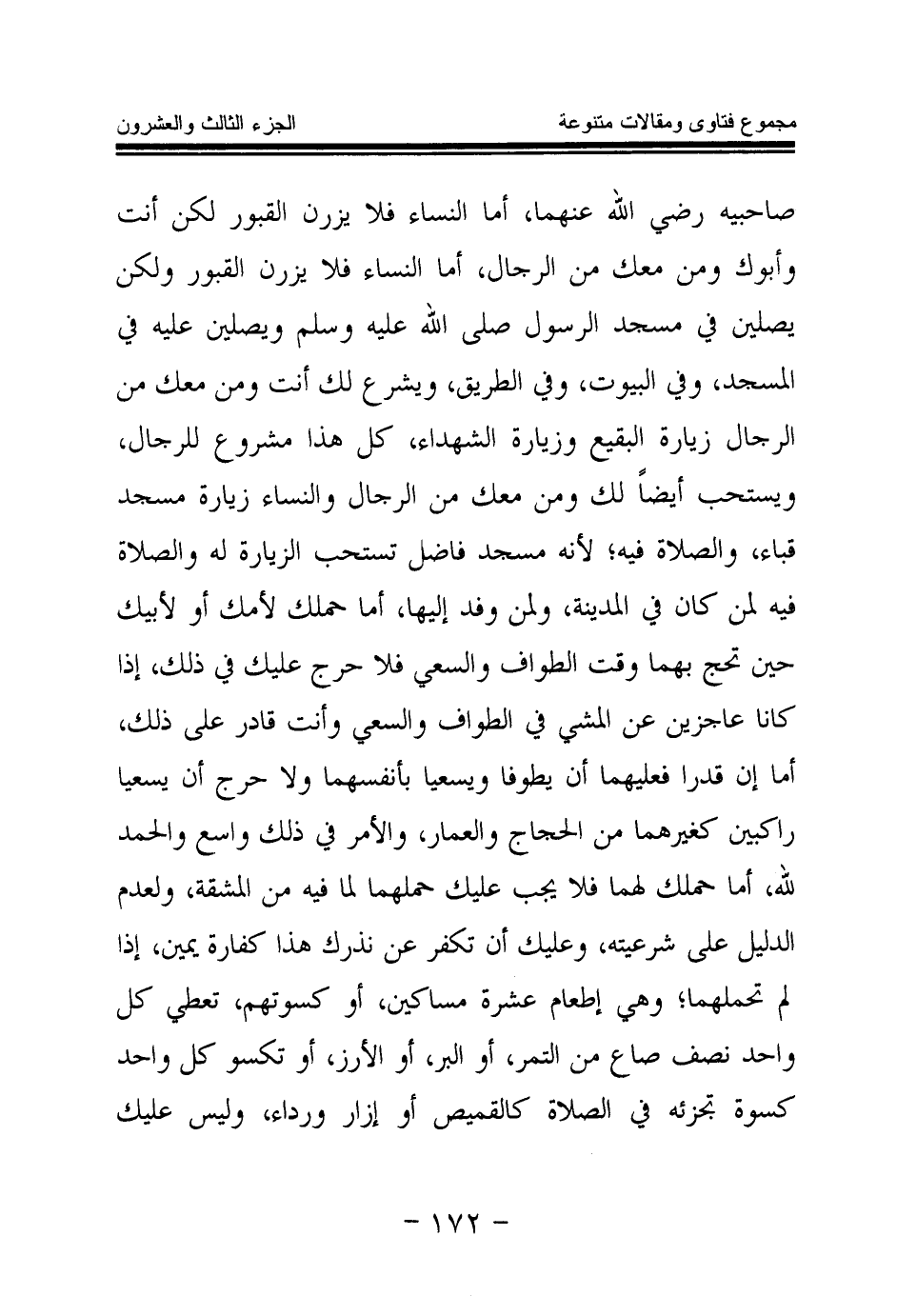 صاحبيه رضي الله عنهما، أما النساء فلا يزرن القبور لكن أنت وأبوك ومن معك من الرجال، أما النساء فلا يزرن القبور ولكن يصلين في مسجد الرسول صلى الله عليه وسلم ويصلين عليه في المسجد وفي البيوت وفي الطريق (صلى الله عليه وعلى آله وسلم) .