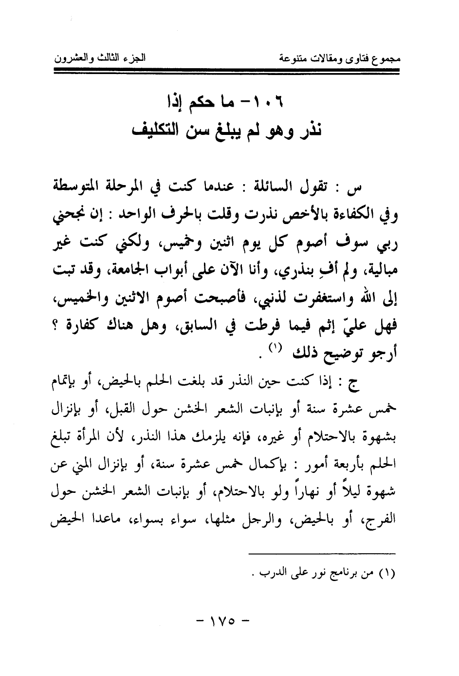 106 - ما حكم إذا نذر وهو لم يبلغ سن التكليف