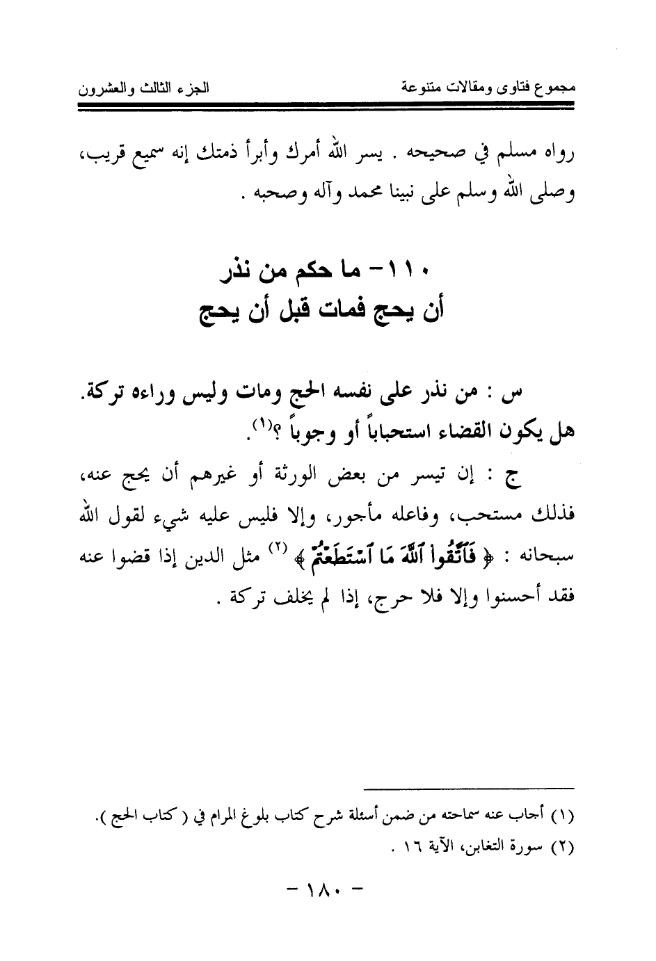 110 - ما حكم من نذر أن يحج فمات قبل أن يحج