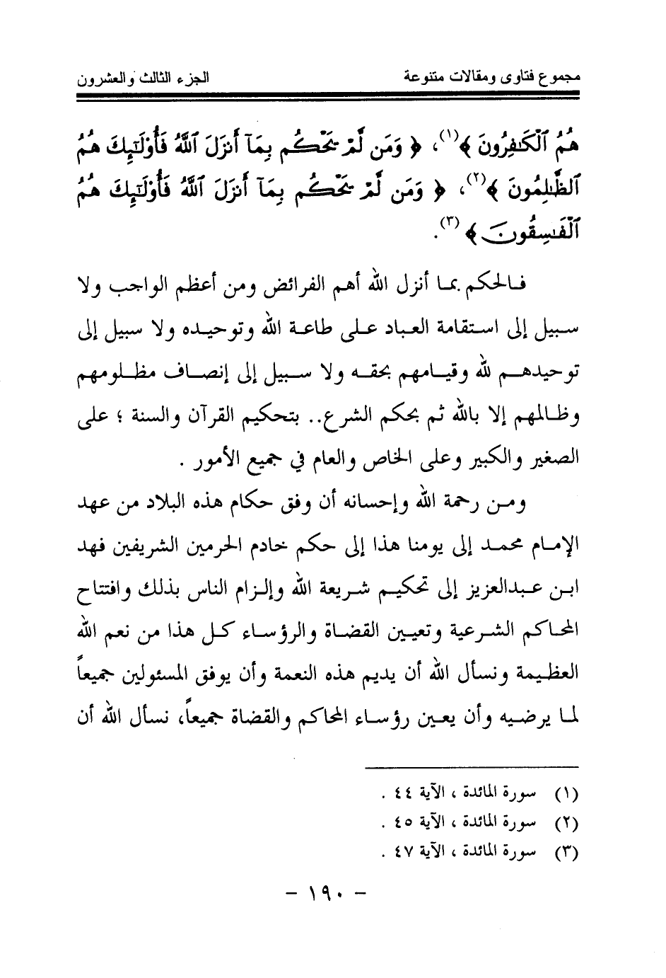 {وَمَنْ لَمْ يَحْكُمْ بِمَا أَنْزَلَ اللَّهُ فَأُولَئِكَ هُمُ الظَّالِمُونَ} (¬1) {وَمَنْ لَمْ يَحْكُمْ بِمَا أَنْزَلَ اللَّهُ فَأُولَئِكَ هُمُ الْفَاسِقُونَ} (¬2)