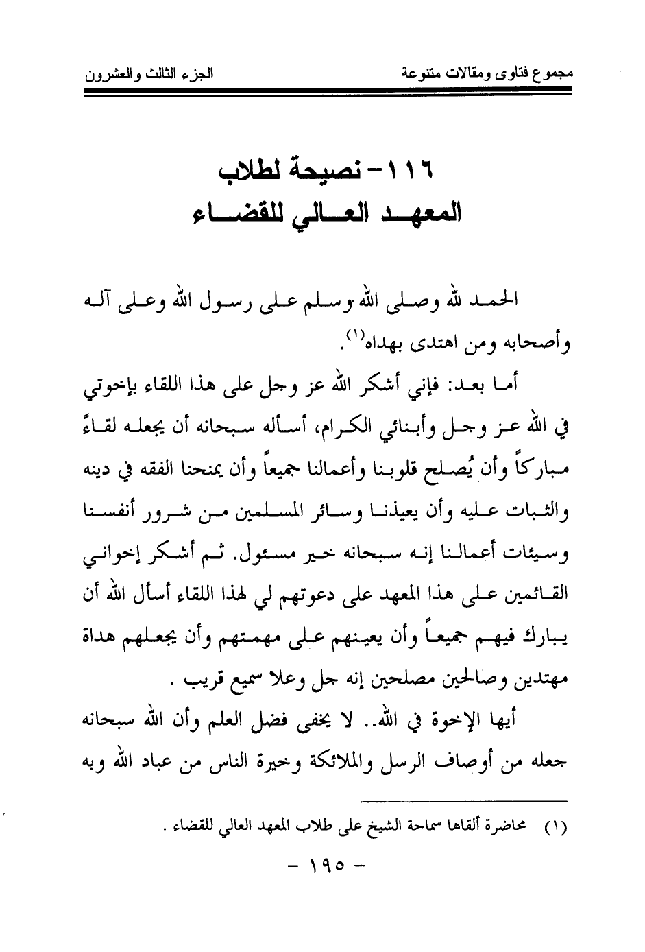 116 - نصيحة لطلاب المعهد العالي للقضاء