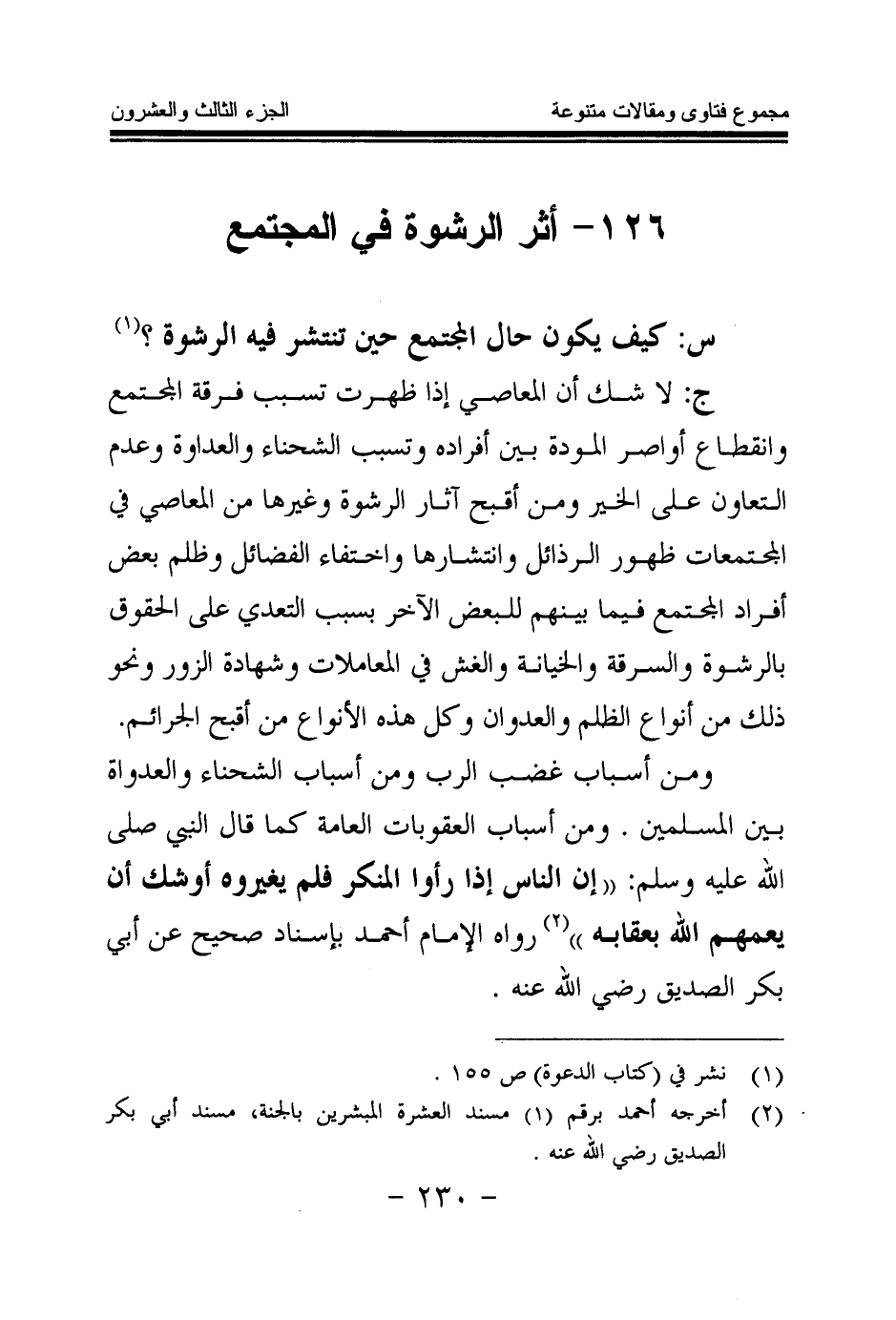 س: كيف يكون حال المجتمع حين تنتشر فيه الرشوة؟ (¬1)