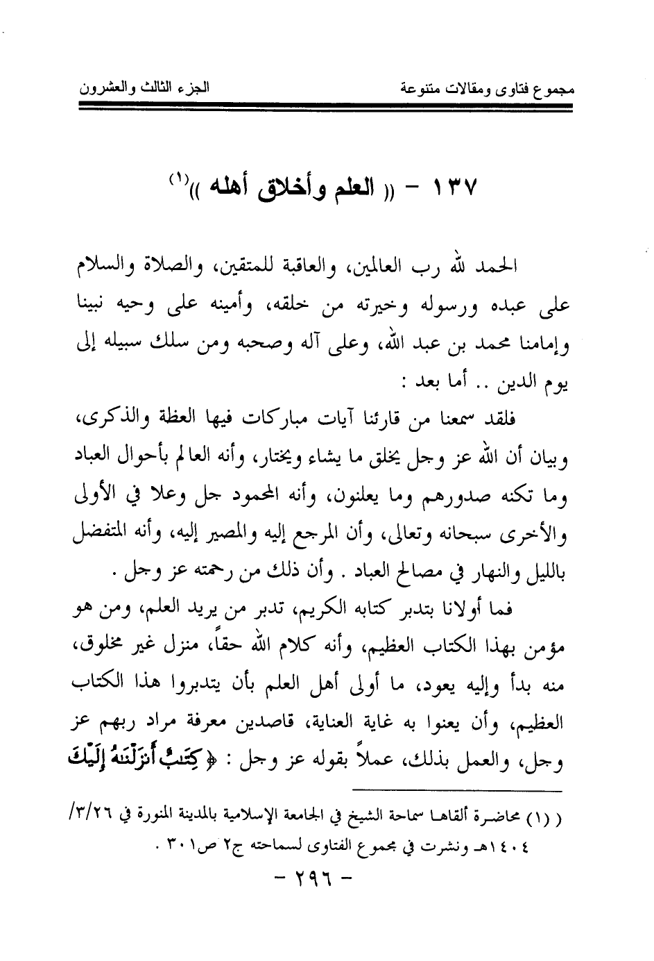 فما أولانا بتدبر كتابه الكريم، تدبر من يريد العلم، ومن هو مؤمن بهذا الكتاب العظيم، وأنه كلام الله حقا، منزل غير مخلوق، منه بدأ وإليه يعود، ما أولى أهل العلم بأن يتدبروا هذا الكتاب العظيم، وأن يعنوا به غاية العناية، قاصدين معرفة مراد ربهم عز وجل، والعمل بذلك، عملا بقوله عز وجل: