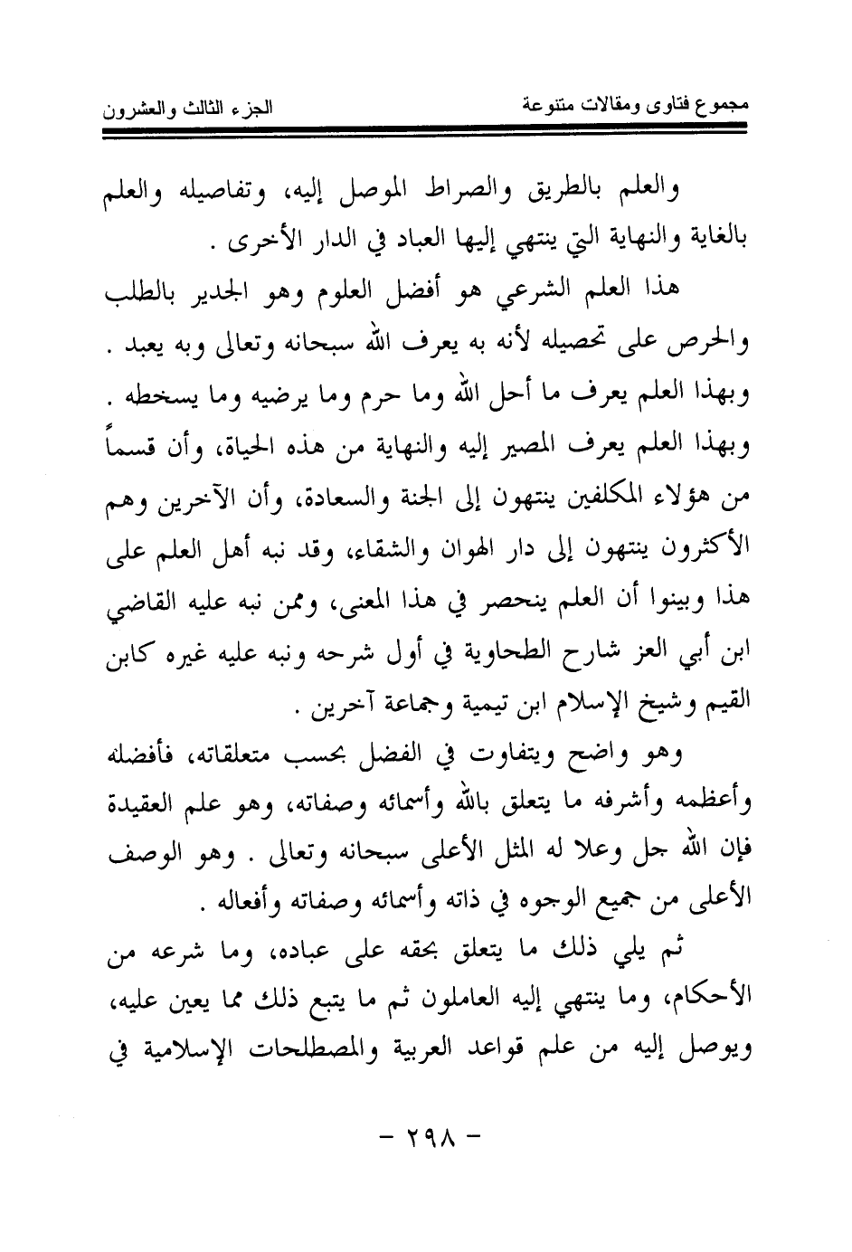هذا العلم الشرعي هو أفضل العلوم وهو الجدير بالطلب والحرص على تحصيله، لأنه به يعرف الله سبحانه وتعالى وبه يعبد. وبهذا العلم يعرف ما أحل الله وما حرم وما يرضيه وما يسخطه.