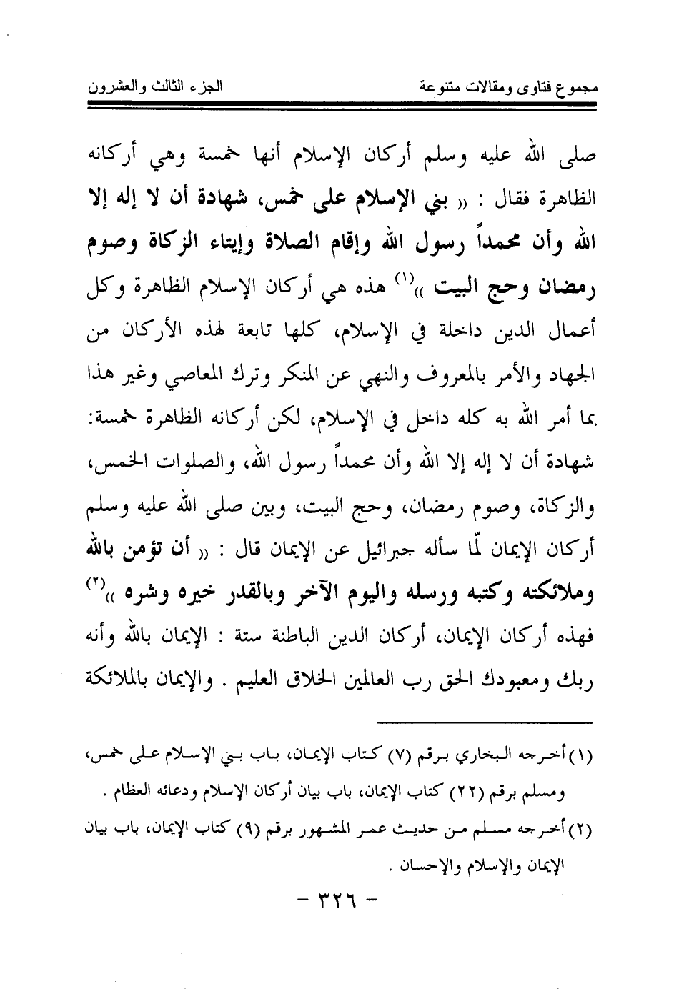 (¬1) أخرجه البخاري رقم (7) كتاب الإيمان، باب بني الإسلام على خمس، ومسلم برقم (22) كتاب الإيمان، باب بيان أركان الإسلام ودعائه العظام.