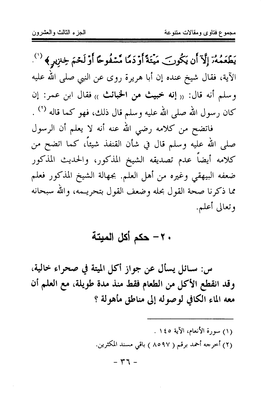 20 - حكم أكل الميتة