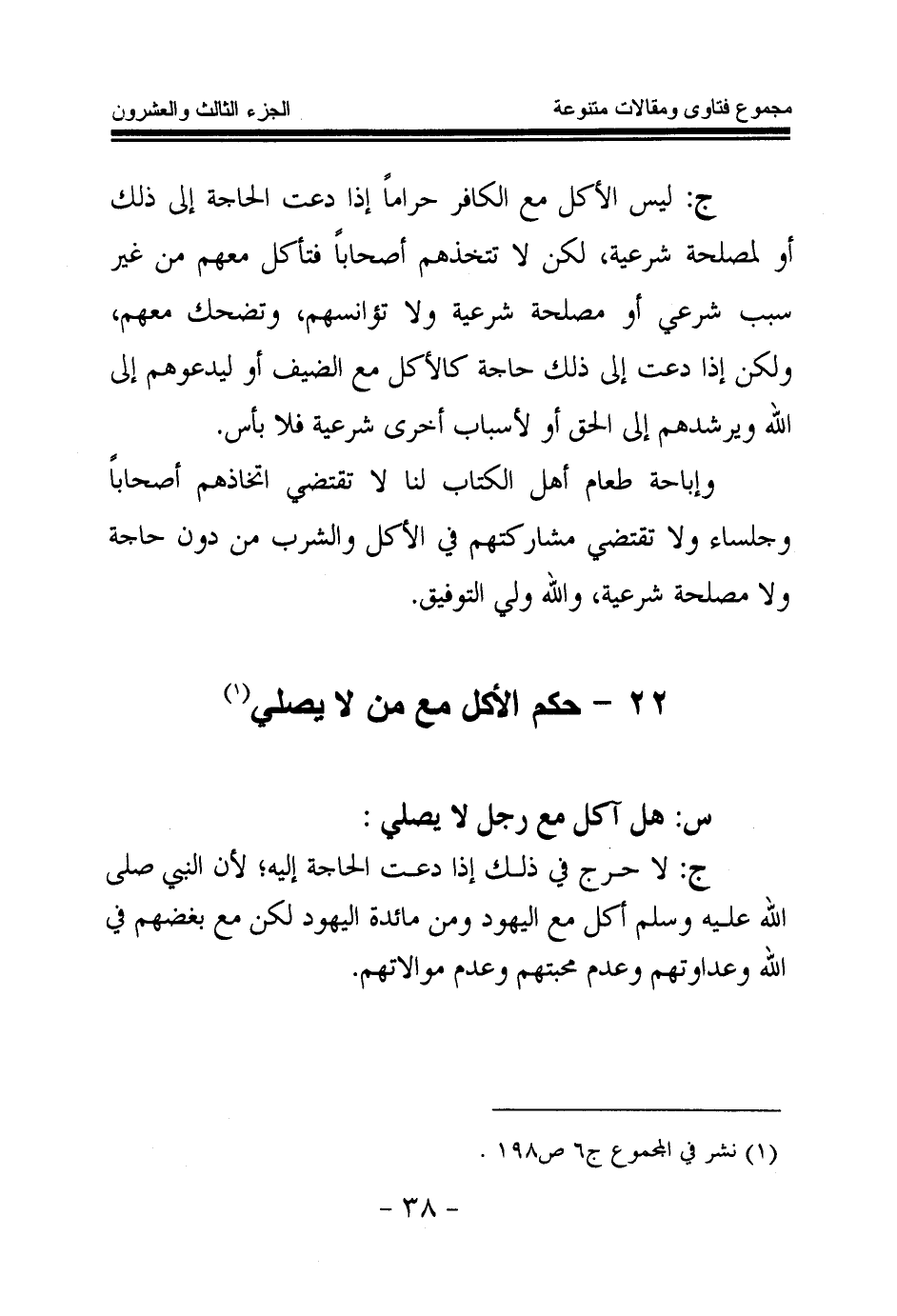 22 - حكم الأكل مع من لا يصلي (¬1)