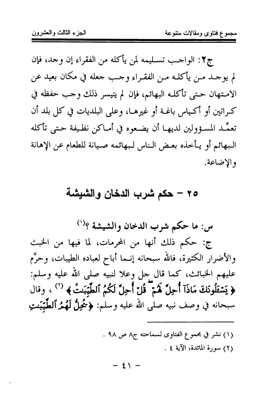 25 - حكم شرب الدخان والشيشة؟ (¬1)