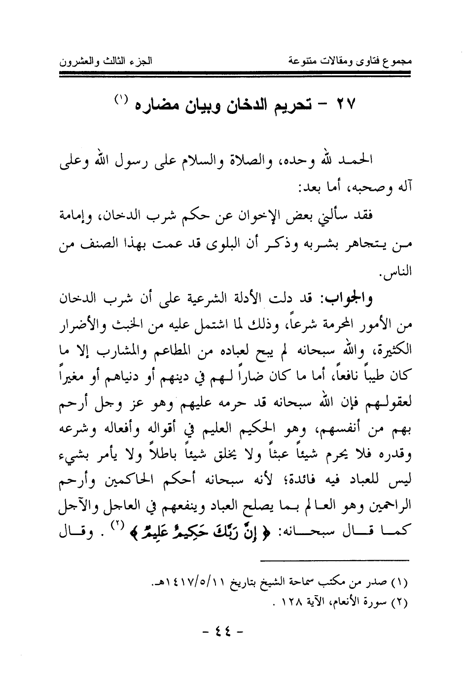 27 - تحريم الدخان وبيان مضاره (¬1)
