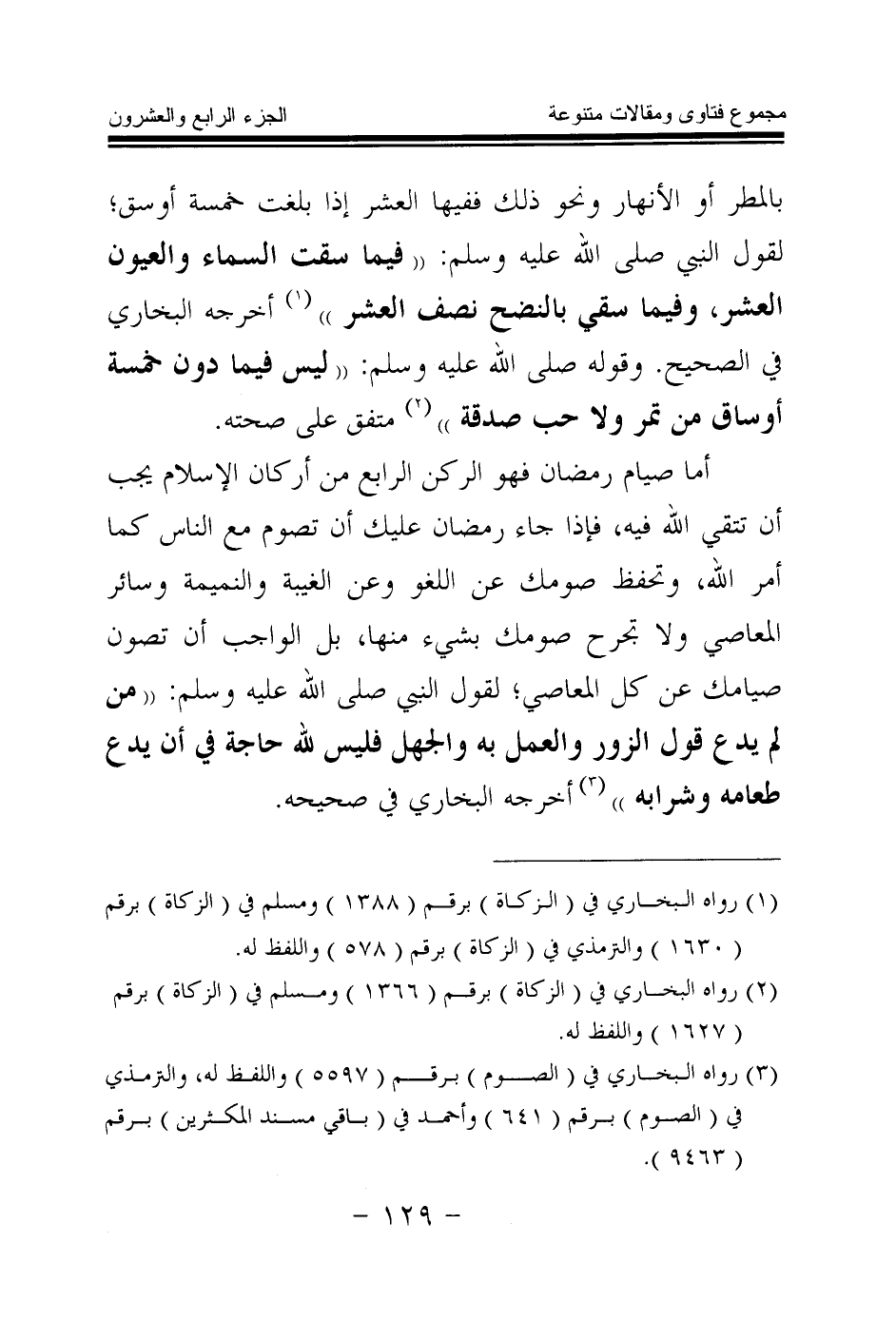 (¬1) رواه البخاري في (الزكاة) برقم (1388) ومسلم في (الزكاة) برقم (1630) والترمذي في (الزكاة) برقم (578) واللفظ له.