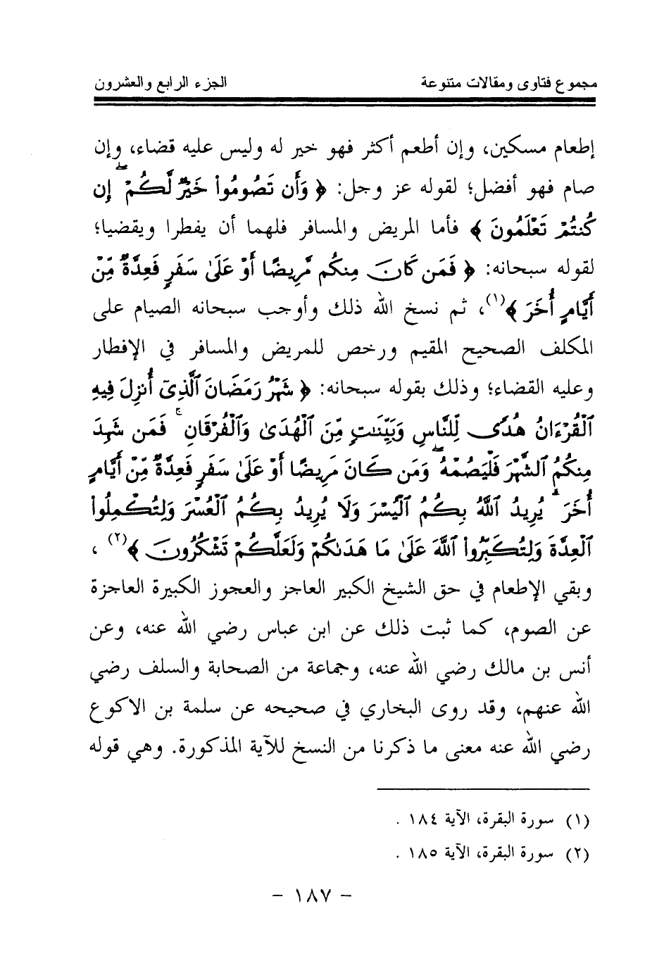 (¬1) سورة البقرة الآية 184
