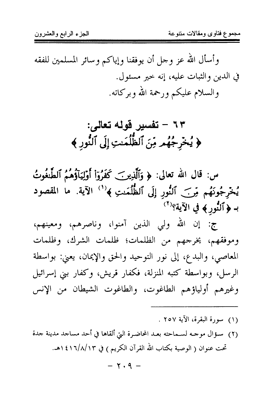 63 - تفسير قوله تعالى: {يُخْرِجُهُمْ مِنَ الظُّلُمَاتِ إِلَى النُّورِ} (¬1)