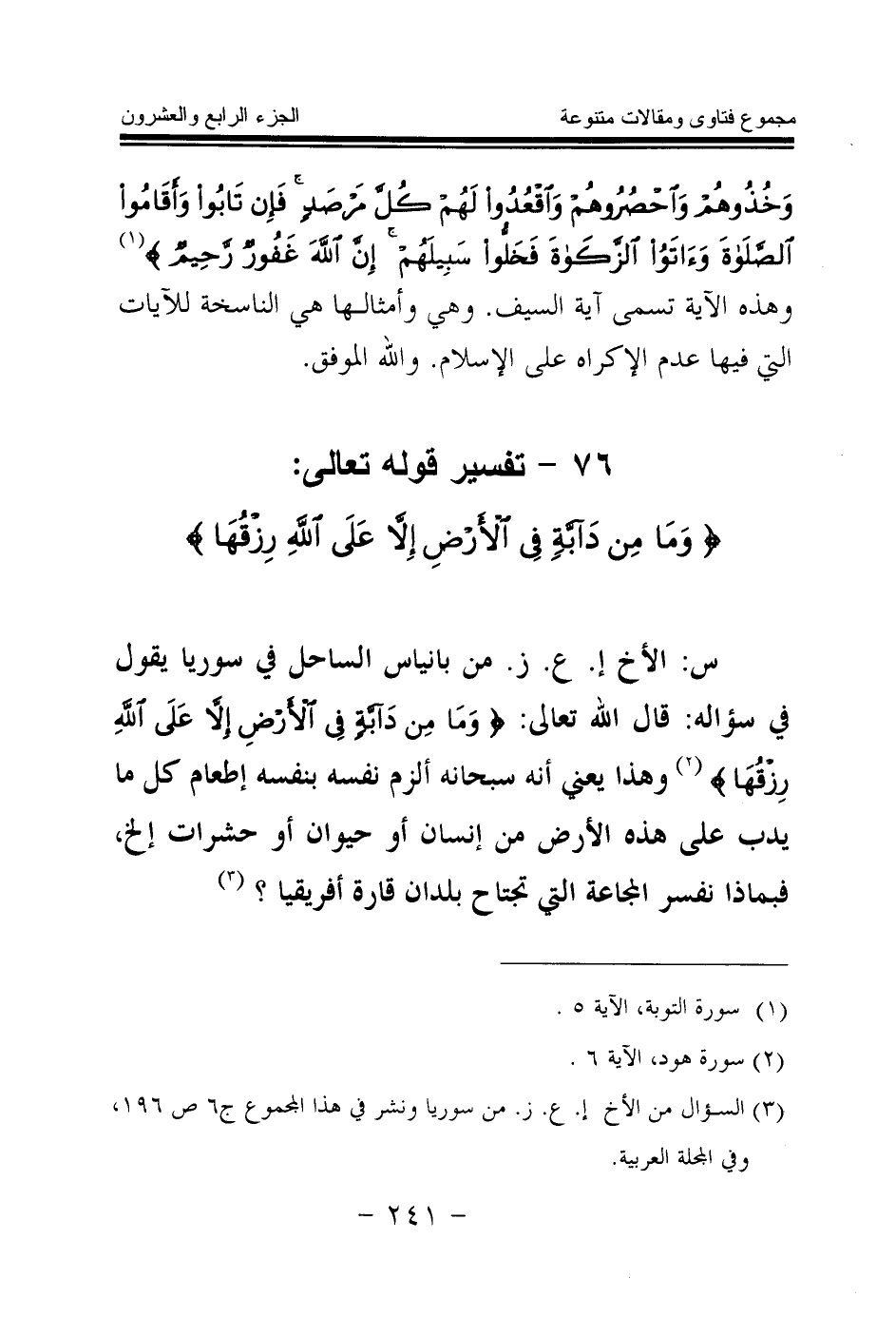 (¬3) السؤال من الأخ إ. ع. ز. من سوريا ونشر في هذا المجموع ج 6 ص 196، وفي المجلة العربية.