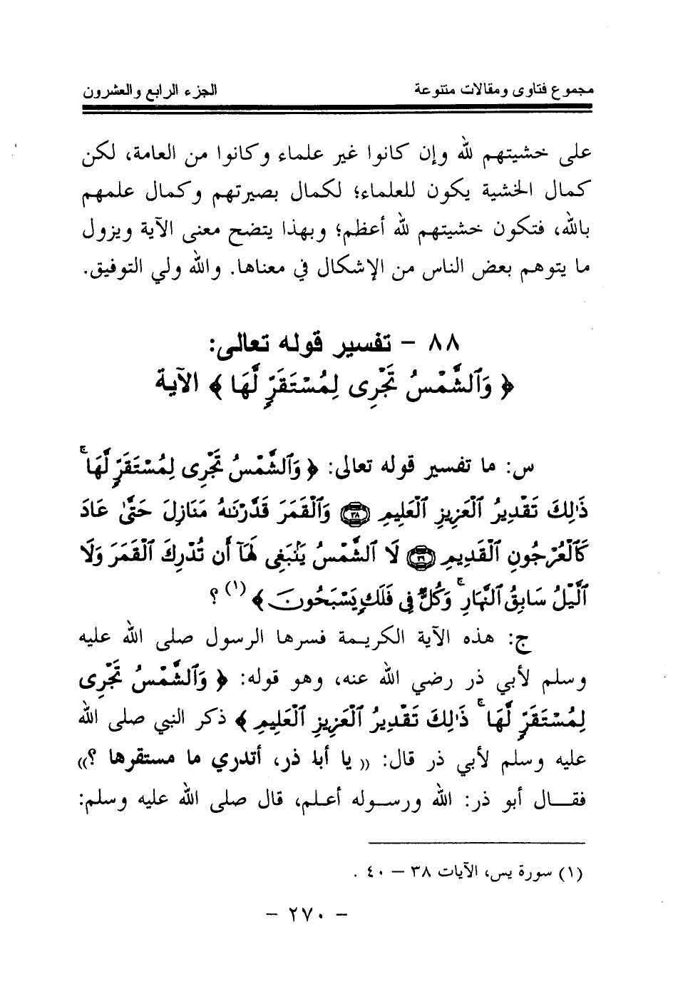 88 - تفسير قوله تعالى: {وَالشَّمْسُ تَجْرِي لِمُسْتَقَرٍّ لَهَا} (¬1) الآية