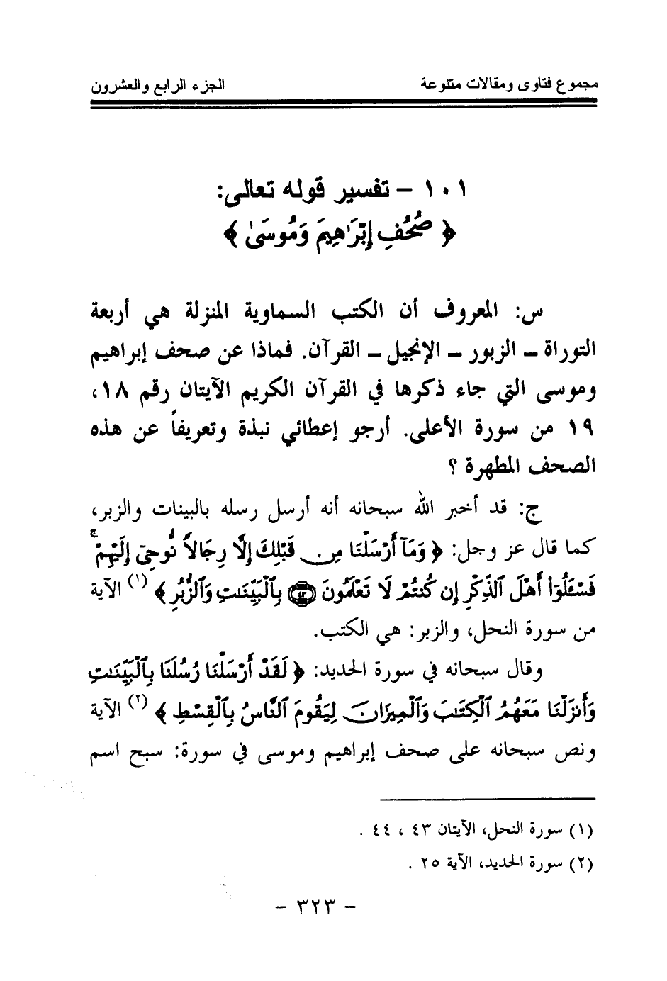 101 - تفسير قوله تعالى: {صُحُفِ إِبْرَاهِيمَ وَمُوسَى} (¬1)