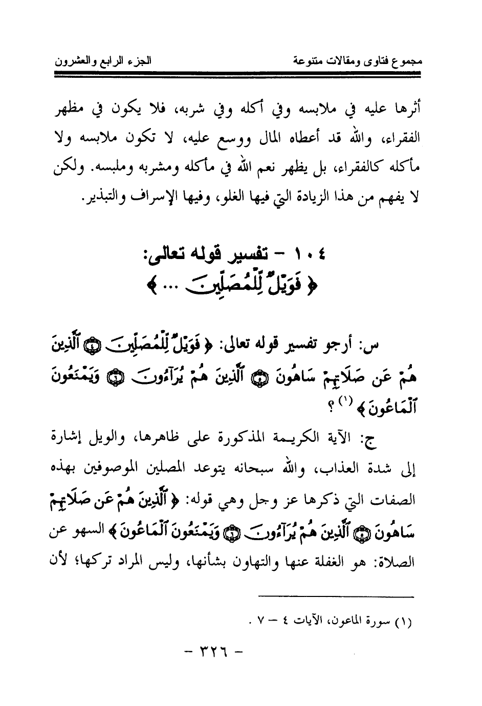 104 - تفسير قوله تعالى: {فَوَيْلٌ لِلْمُصَلِّينَ} (¬1) . . . .)