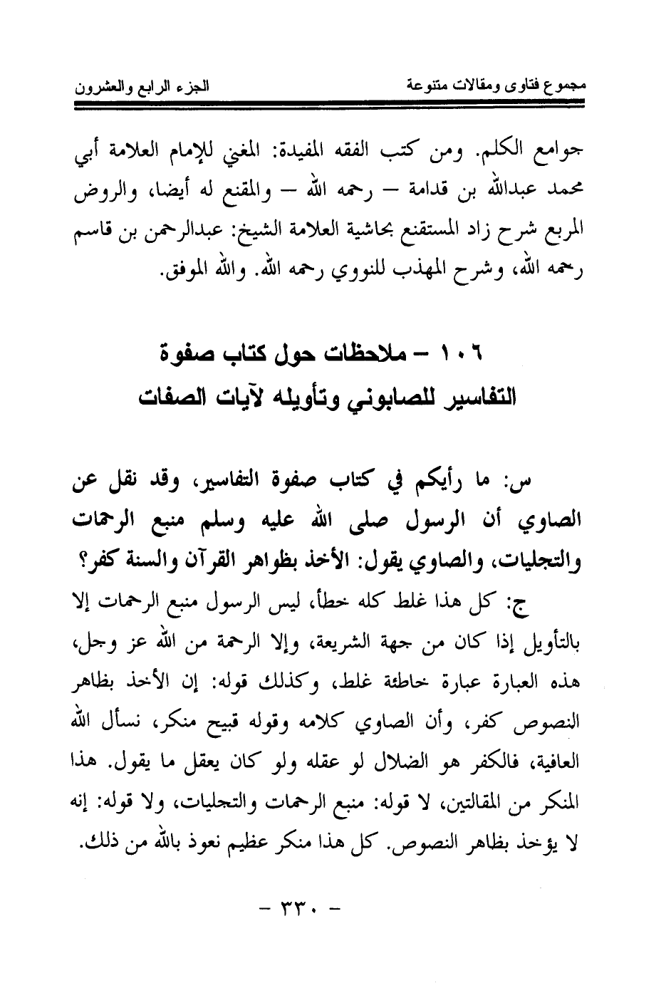 106 - ملاحظات حول كتاب صفوة التفاسير للصابوني وتأويله لآيات الصفات
