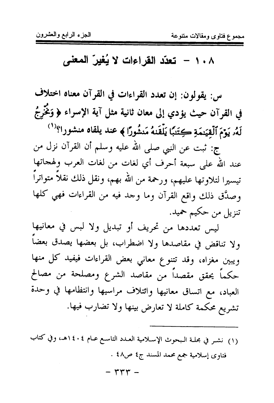 108 - تعدد القراءات لا يغير المعنى