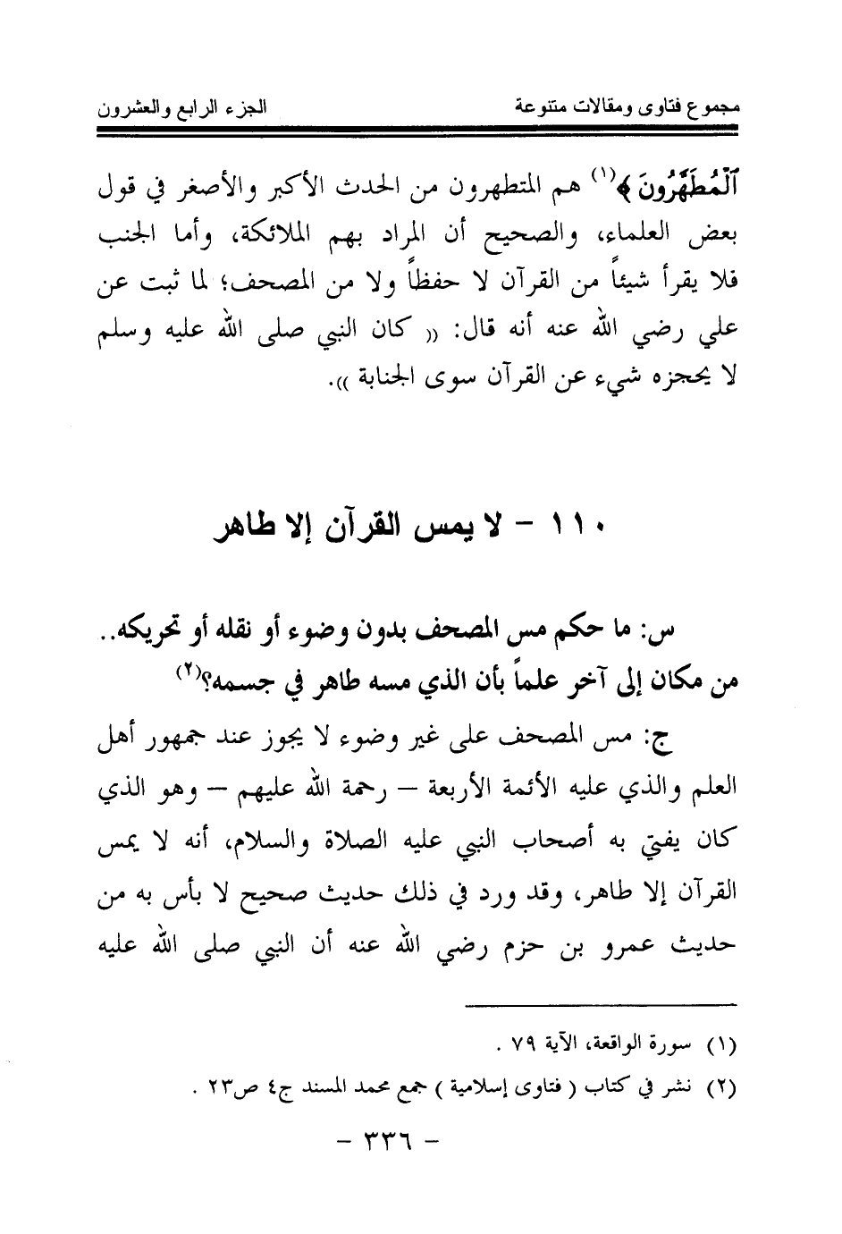 110 - لا يمس القرآن إلا طاهر