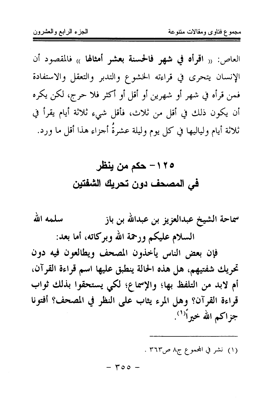 125 - حكم من ينظر في المصحف دون تحريك الشفتين
