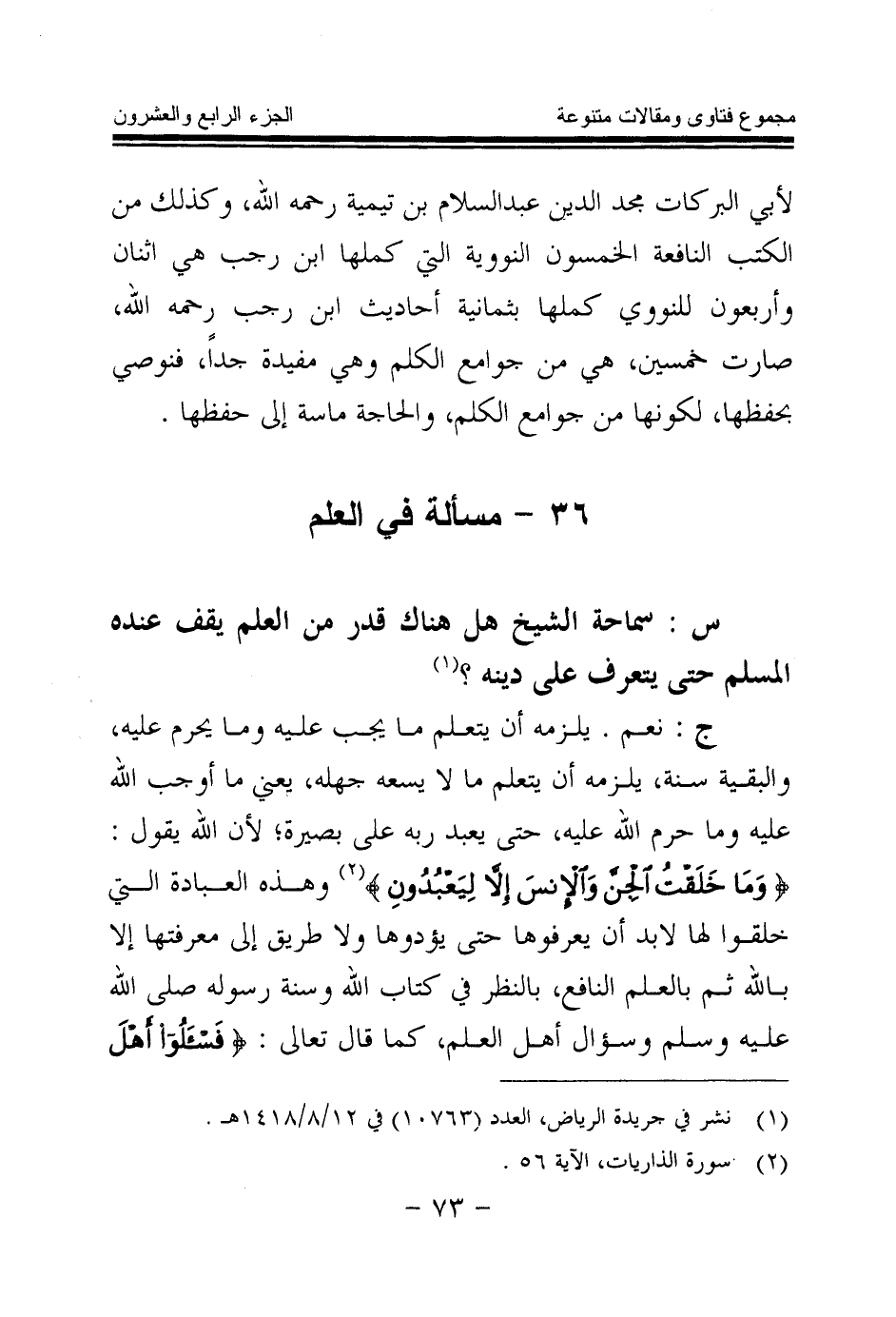 36 - مسألة في العلم