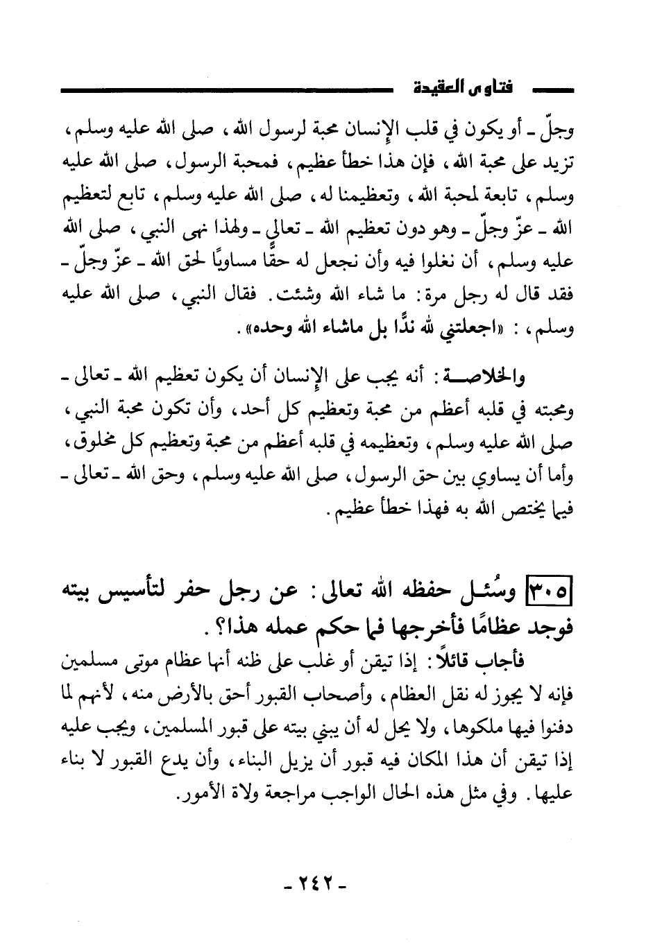 (305) وسئل -حفظه الله تعالى- عن رجل حفر لتأسيس بيته فوجد عظامًا فأخرجها فما حكم عمله هذا؟