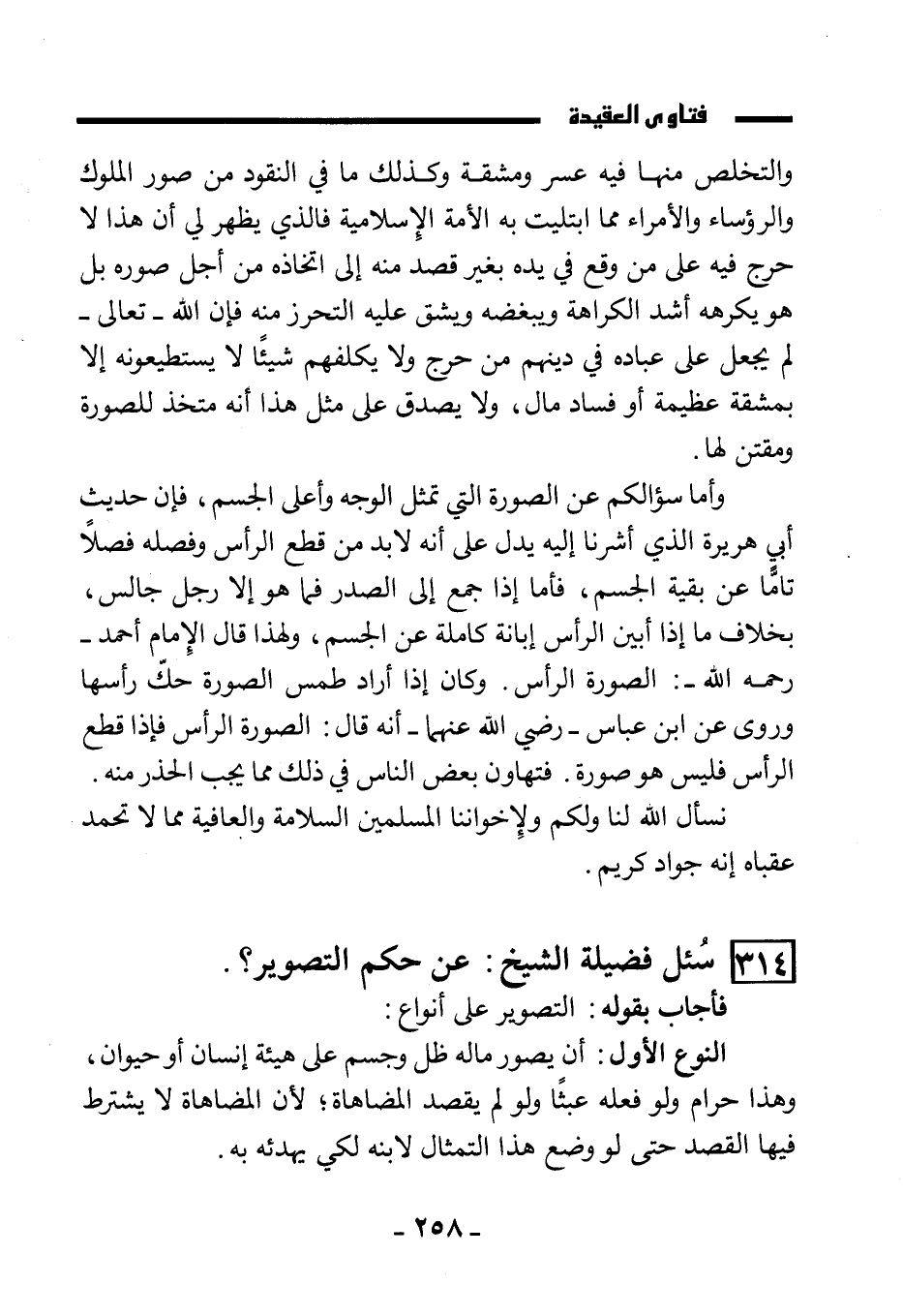(314) سئل فضيلة الشيخ: عن حكم التصوير؟