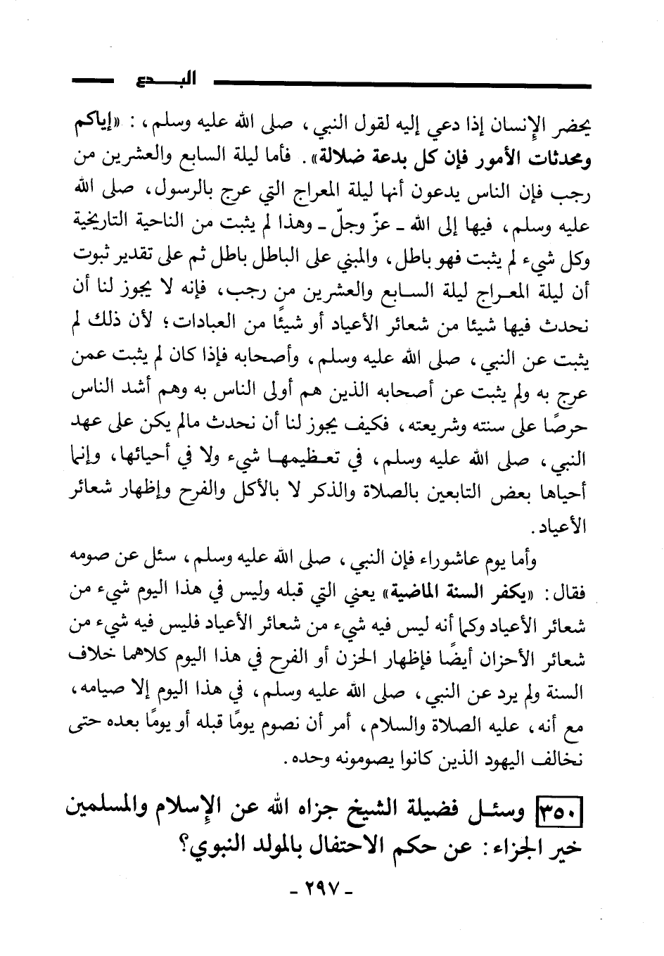 (350) وسئل فضيلة الشيخ جزاه الله عن الإسلام والمسلمين خير الجزاء: عن حكم الاحتفال بالمولد النبوي؟