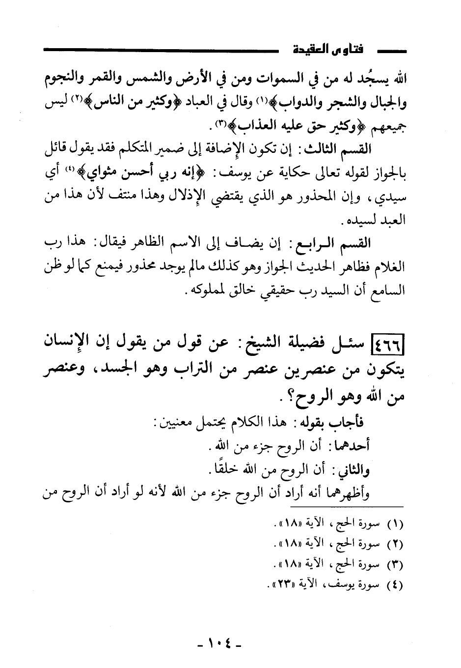 (466) سئل فضيلة الشيخ: عن قول من يقول: إن الإنسان يتكون من عنصرين عنصر من التراب وهو الجسد، وعنصر من الله وهو الروح؟