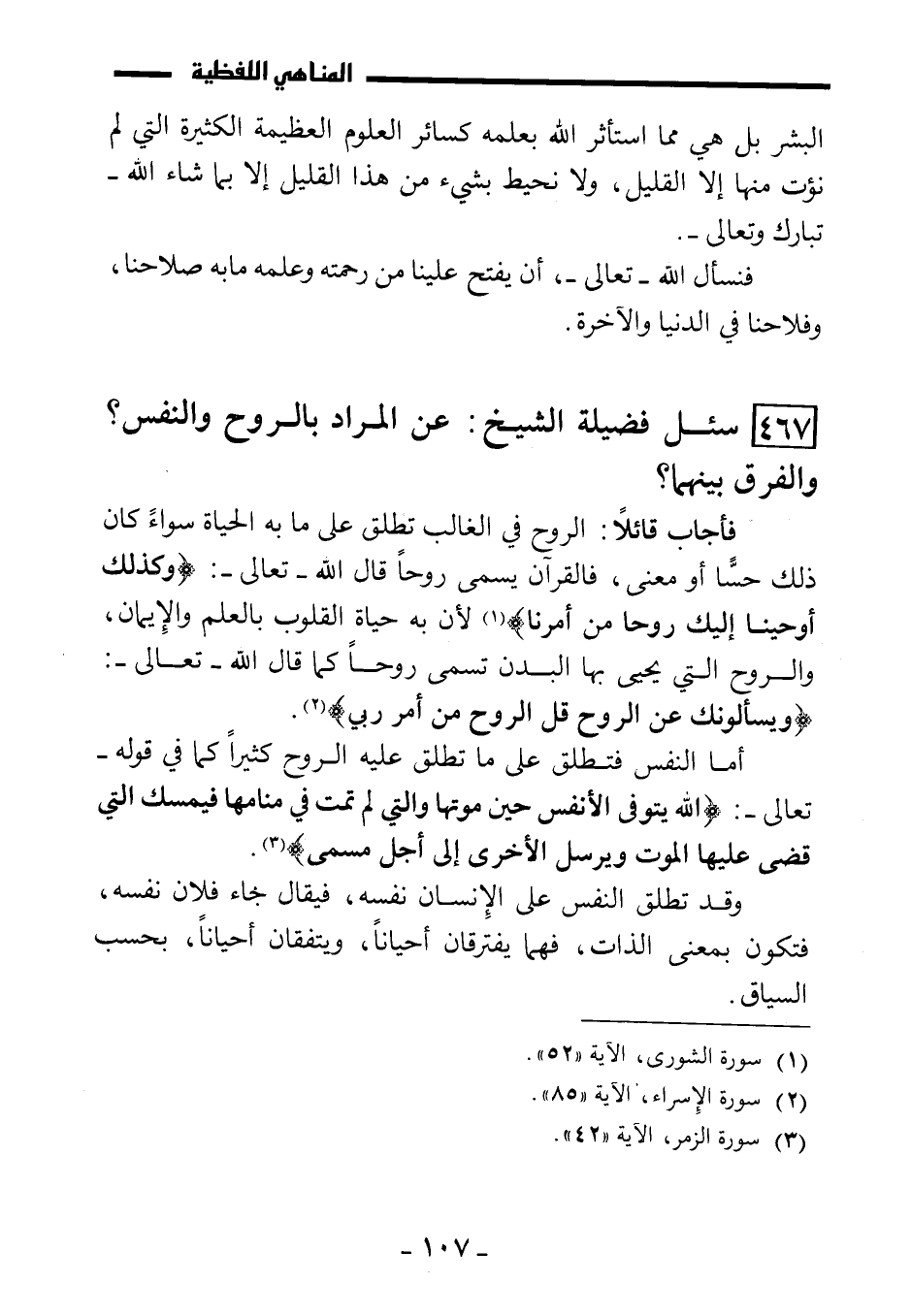 (467) سئل فضيلة الشيخ: عن المراد بالروح والنفس؟ والفرق بينهما؟
