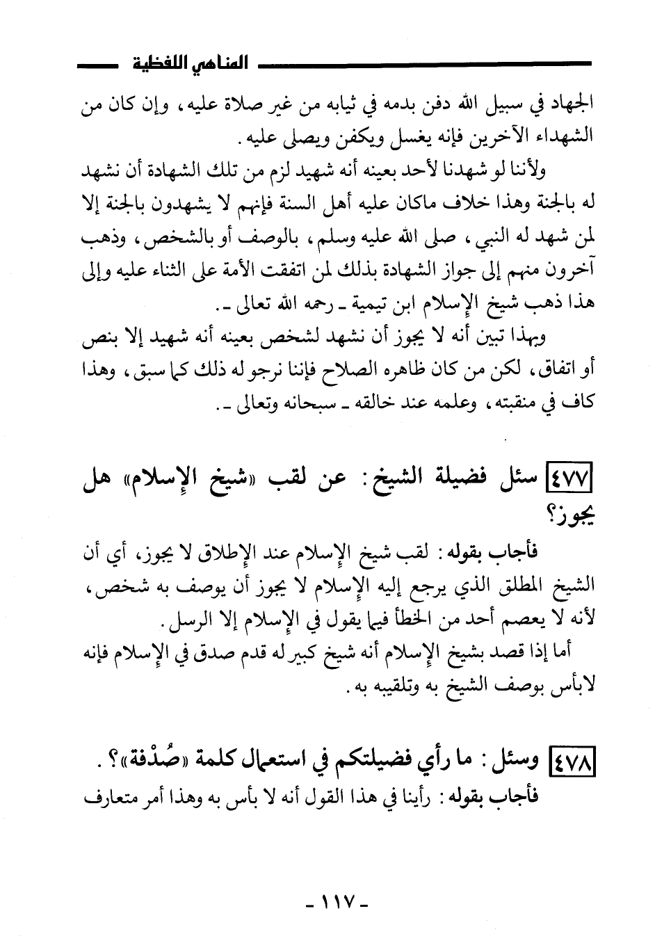 (477) سئل فضيلة الشيخ: عن لقب " شيخ الإسلام " هل يجوز؟