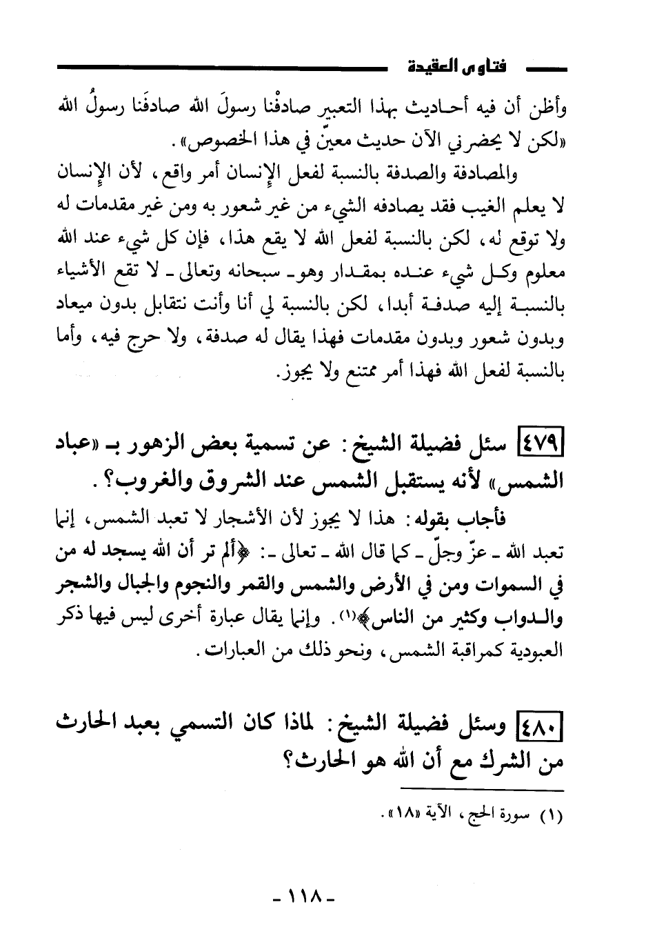 (480) وسئل فضيلة الشيخ: لماذا كان التسمي بعبد الحارث من الشرك مع أن الله هو الحارث؟