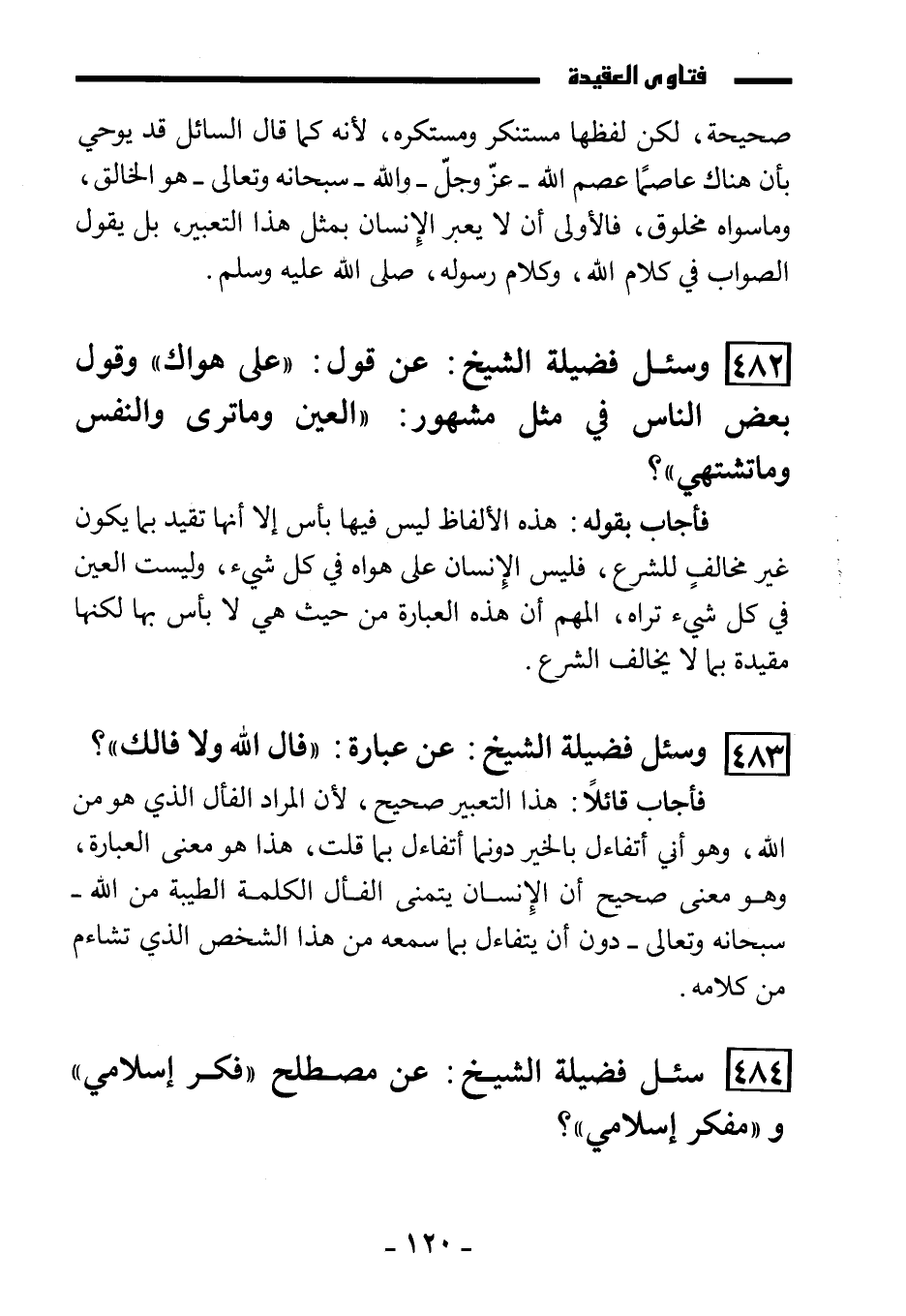 (484) سئل فضيلة الشيخ: عن مصطلح " فكر إسلامي " و" مفكر إسلامي "؟