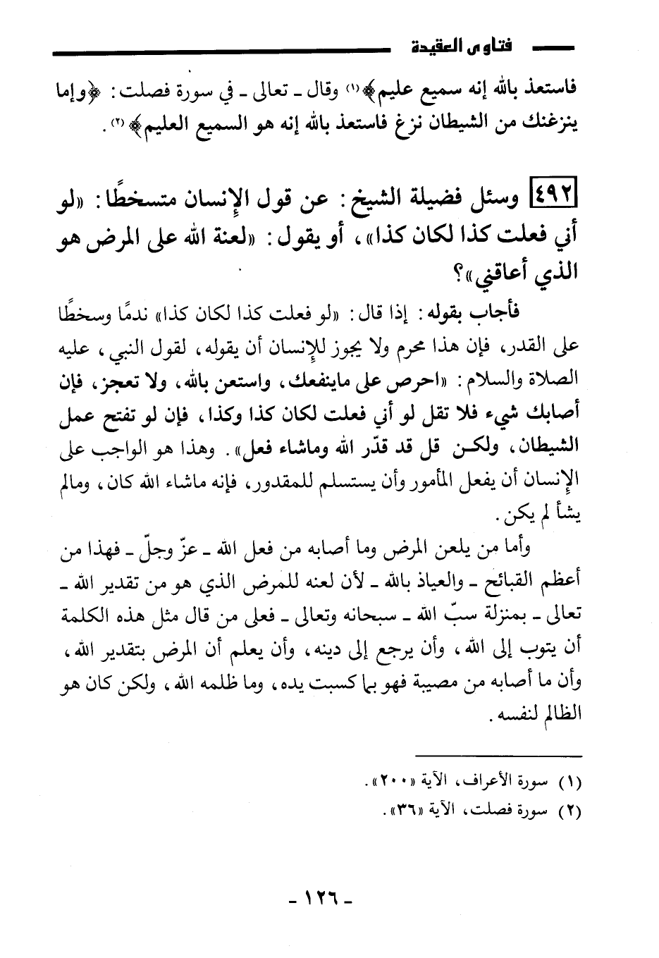 (492) وسئل فضيلة الشيخ: عن قول الإنسان متسخطًا: " لو أني فعلت كذا لكان كذا "، أو يقول: " لعنة الله على المرض هو الذي أعاقني "؟