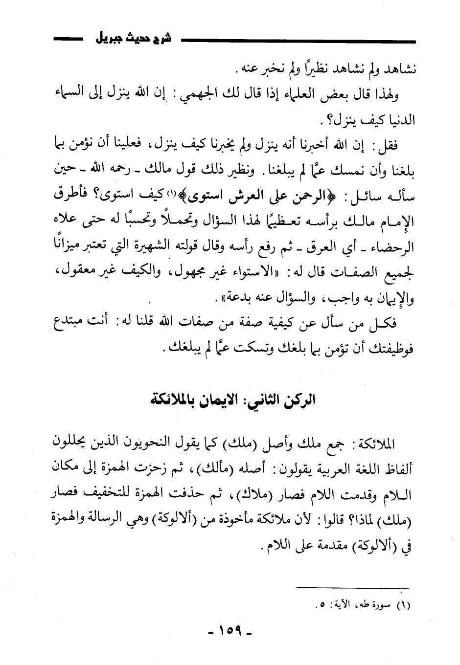 فقل: إن الله أخبرنا أنه ينزل ولم يخبرنا كيف ينزل، فعلينا أن نؤمن بما بلغنا وأن نمسك عمَّا لم يبلغنا. ونظير ذلك قول مالك - رحمه الله - حين سأله سائل: {الرَّحْمَنُ عَلَى الْعَرْشِ اسْتَوَى} كيف استوى؟ فأطرق الإمام مالك برأسه تعظيمًا لهذا السؤال وتحملًا وتحسبًا له حتى علاه الرحضاء - أي العرق - ثم رفع رأسه وقال قولته الشهيرة التي تعتبر ميزانًا لجميع الصفات قال له: " الاستواء غير مجهول، والكيف غير معقول، والإيمان به واجب، والسؤال عنه بدعة ".